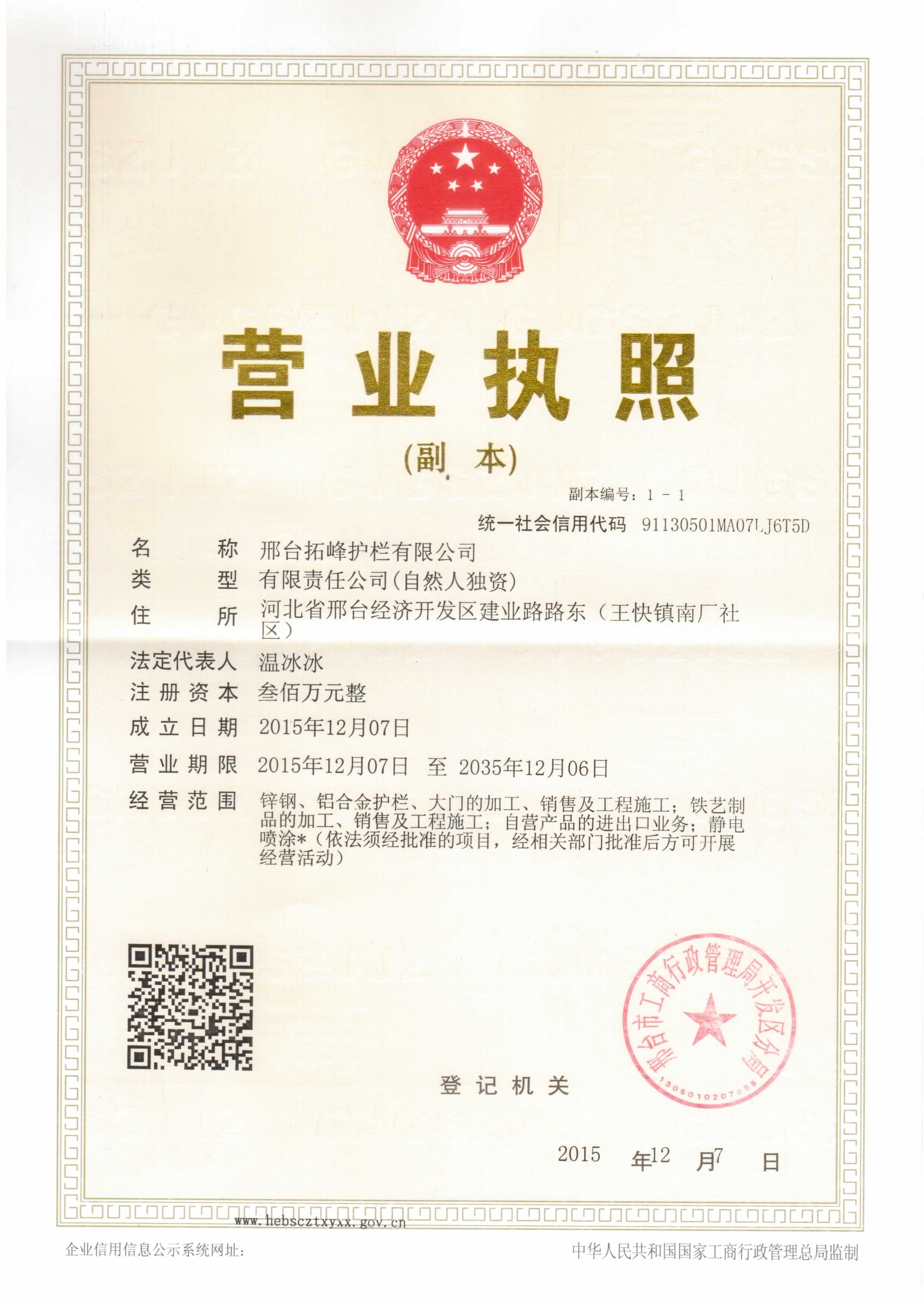 公司:邢臺(tái)拓峰護(hù)欄有限公司